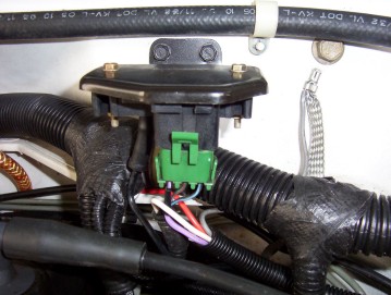 Here above you can see how the stock purple wire with a white stripe has been cut that went to the MAP sensor. This is the original 5v supply. The end coming from the harness gets the white wire soldered to it and goes to one side of the switch. The other end going to the MAP sensor has the purple wire from the middle of the switch soldered to it with either the modified or stock voltage suppling the MAP sensor depending on the switches position.