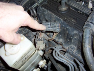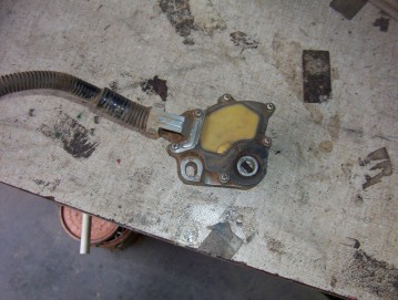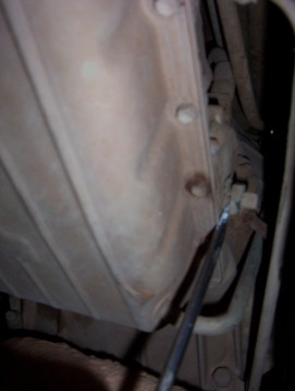 After getting it free the NSS now needs to be un-plugged so that it can be completely removed for cleaning. The plug is up on the firewall just in front of the dip stick for the auto. To make getting the cable back up there later on it is a good idea to tie some string to it before dropping it out to help pull it back up again later. You will have to cut a few zip ties along the cable so that you can pull it down.