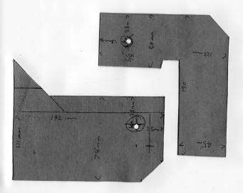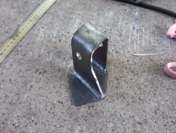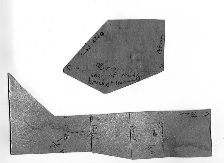 The stabilizer bracket was folded just in a vice but you could make it up out of three pieces too. Remember you are looking at a RHD version so you need the mirror image. The angle it set so it fits directly into the stabilizer fit when the wheels are pointing straight ahead. The longer braced part goes to the back and points toward the front as shown in the above shot.