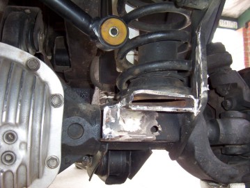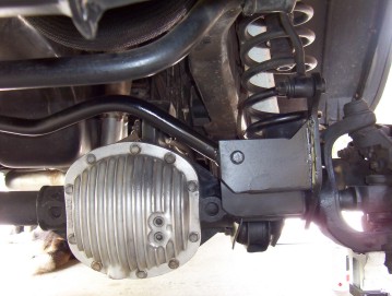 The rear bracket was welded in first and checked to be square to the underside of the coil mount. Then the front one is welded in against the new extended swaybar link and hard against the front of the coil mount. A weld was also placed on the back side on top of the coil mount. Make sure that the top of both bracket are flat. You will need to shorten the trackbar the amount is has moved across which is around 3". I recommend only to shorten a aftermarket trackbar rather than the cast steel stock one. I just pressed out the bushing and then cut the bush housing off. Cut the required amount off the end of the trackbar and then welded the bush housing back on again. In Australia I used an adjustable trackbar from Whiteline which can be used for any RHD XJ, TJ and ZJ. Can also buy from Repco this brand I have been told and can be cheaper than from their web site as saves you the freight.