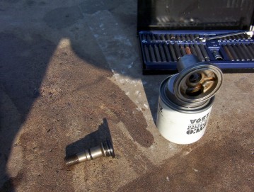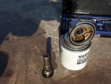 As I was not due for a service, I didn't even drain the oil or remove the filter as it is not required as the oil level in the sump is lower than the adaptor. There will be a small amount drain out of the filter itself though until you get it upright so be ready for that. There are three O rings that get replaced and come with the kit from the Jeep dealer, #1- 04720363 for my 95 XJ.