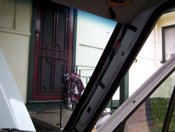 I have a fully tinted windscreen so cant fit the usual stuck on rear view mirror. Also I had problems in the Outback heat that the mirror would suddenly drop off even with the correct glues for the job. So I modified a mirror from a Ford Telstar/Mazda 626 to use instead that I bolted to the cross member. Just had to notch the console to clear it. You can also see the front support screw that holds the console in place.