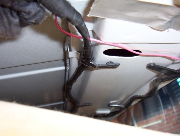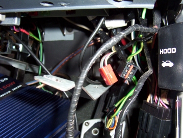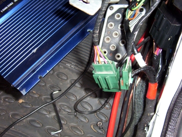 One of the plugs in the new loom just swaps over with the old. The other plug was there as well without anything plugged into it. Took quite a bit of digging but did managed to find it under there! If you do not have the loom to run to this plug, my 95 console had the following: Pin numbers in brackets 1-6 across the top and 13-7 along the bottom. (2) B/LG-Ground, (4) BK-Ground, (5) PK-Positive, (6) PK-Positive, (7)WT/BK-Ignition Switch Output, (8) YL-Courtesy Lamp Output, (9) BK/LB Ambient Air Temp Signal, (10) VT/LG- Sensor Ground, (12) DB/RD-Park Lamp Switch Output, (13) OR/BK-Panel Lamps Driver. The other wiring to be done is fit the temperature sensor behind the bumper and run the loom up behind the headlight to its plug near the underside of the battery mount.