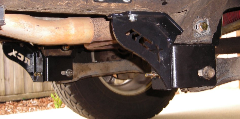 Just want to add another brand ( Rough Country ) that has just been released ( February of 2008 ) that is cheaper than RE and easier to install the braces. I came across these on this NAXJA posting and bought them directly from them via eBay for JDU's XJ. The install is exactly the same as RE above but the braces are bolted in the underside of the frame using the two for each side supplied self tapping bolts.