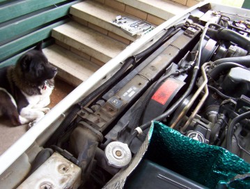 Use a good quality coolant in a 50/50 mix ( Castrol or Nulon are good brands ) for best performance as the manual calls for. It will take a round 10 litres of coolant to fill the system. To drain the coolant over flow tank, hold up the hose and suck up until it gets near the end but not in your mouth! Then put your finger over the end and lower the hose and release your finger and it will drain away. Change you belt too if it has not been done in the last 100,000 kms or 60,000 miles. You can see a write up on fitting an electric16" fan to replace the viscous one once the fan bearing has been removed. I have since done a 6000 km trip in 100*F temps towing my trailer over beaches and one track alone had over 300 sand dunes and only problem I had was once on one very soft beach I had to turn off the aircon and the motor when I laboured the engine in high range for about 20 minutes around 3000 revs with 42.7*C or 109*F temps ( you are better to leave the engine running so long as you are not losing any water as it will recover quicker without loosing any water which switching off does I have since learnt! ). This was after playing on the beaches and sand dunes for 7 hours straight. After fifteen minutes I was right to start again but this time in low range and I had no further problem for the rest of that beach or the high sand dunes back to camp so looks like my new 3 row radiator and electric fan were up to the task.