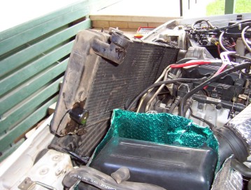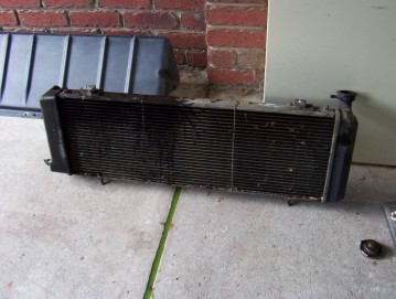To remove the radiator you must first take off the top support panel by removing the 3 bolts at each end, the 4 that bolt it to the front panel as well as the 4 holding the two fans in at the top. Once removed you take off the upper brackets that hold the air-conditioning condenser to the radiator. The electric fan can be removed next as it will just lift up once un-plugged. The main fan shroud can also be worked out now but can be hard.
