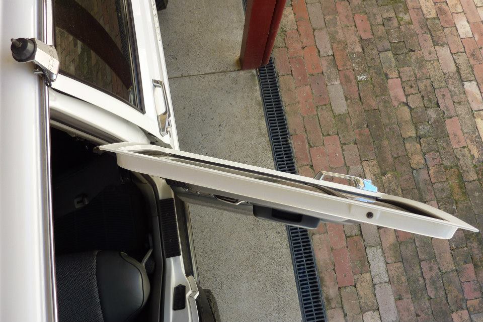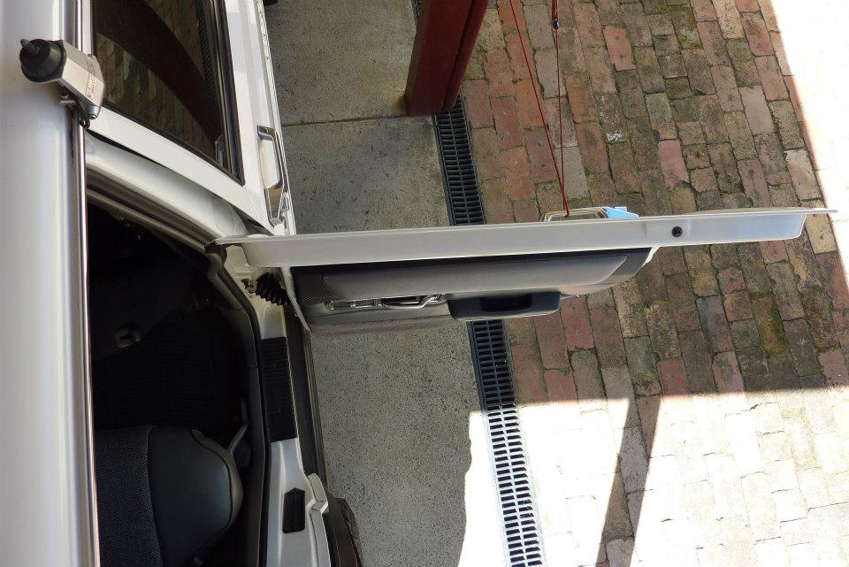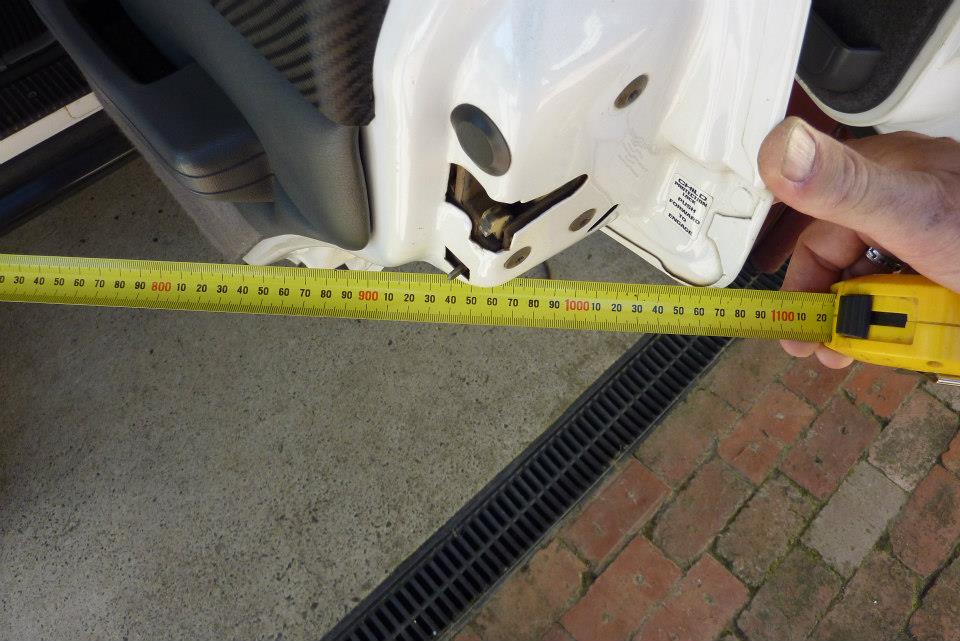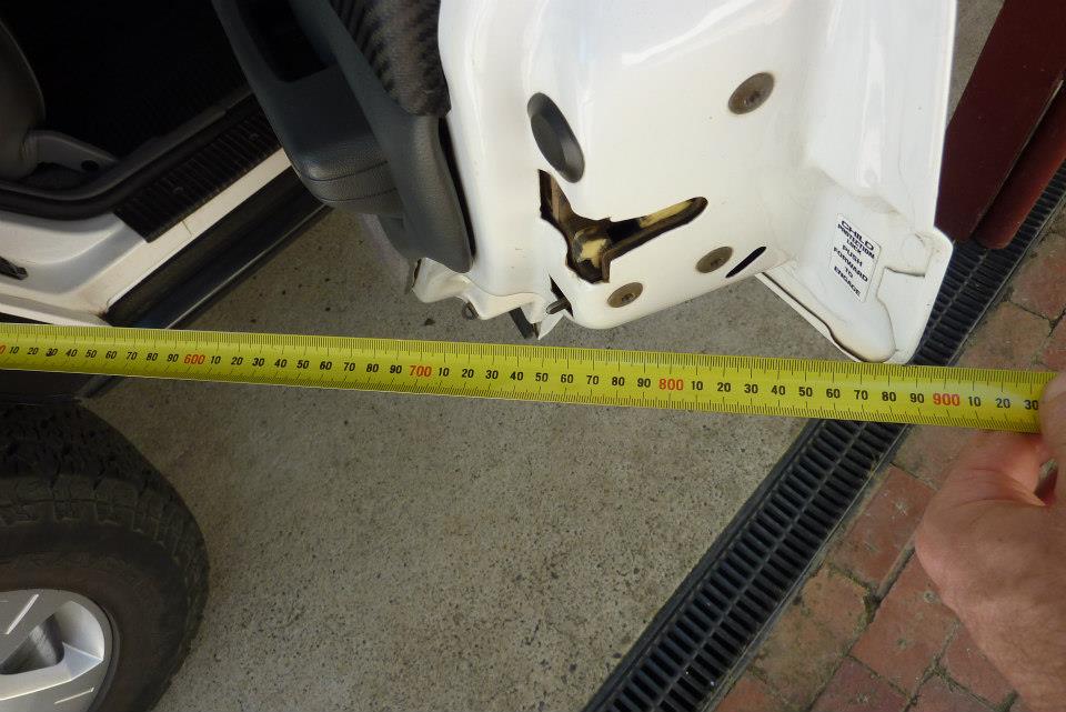 The stock door opens out to 885 mm. After the modifications it now opens to 1075 mm, or nearly 200 mm/8" further.