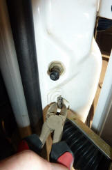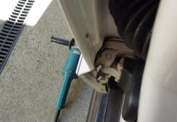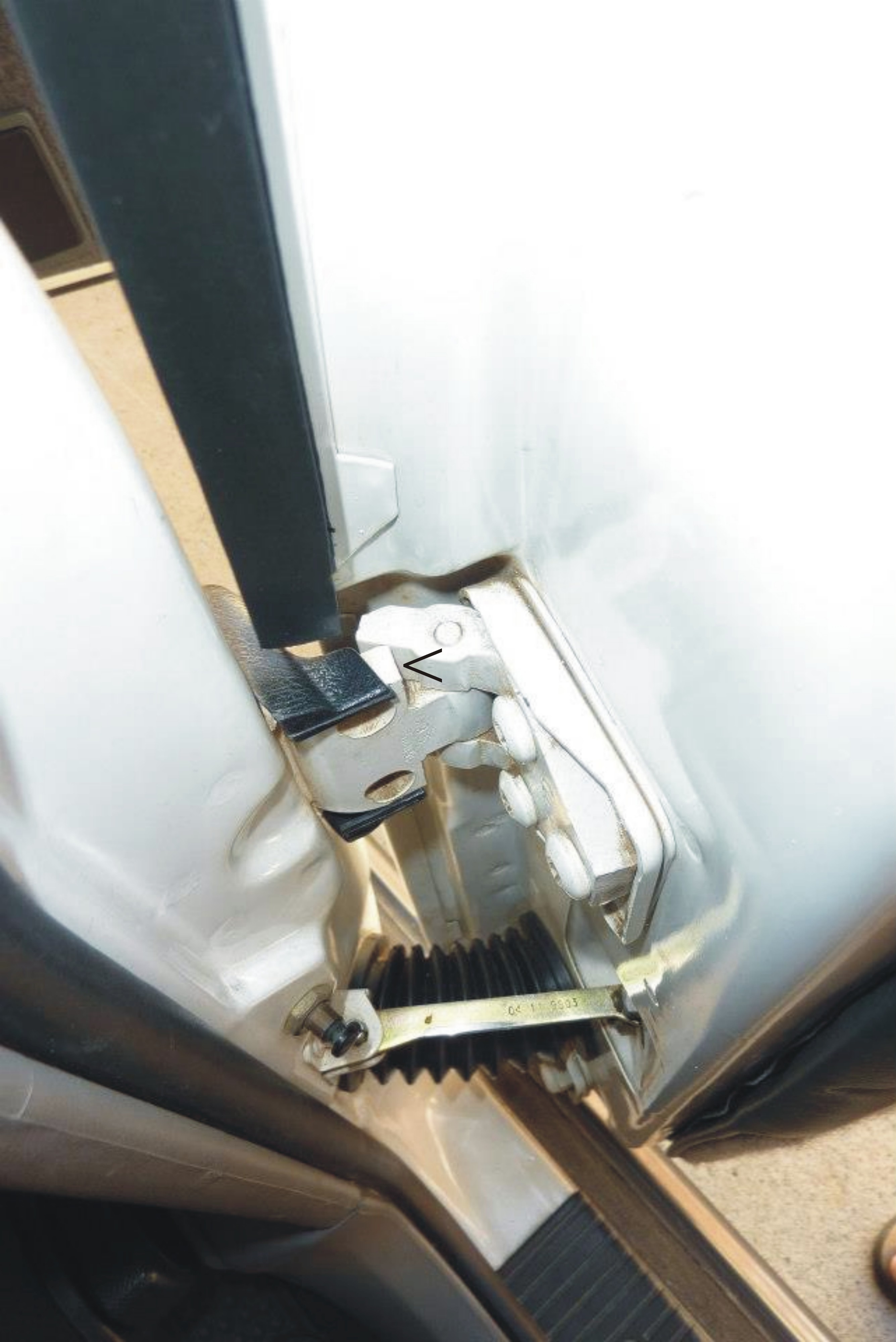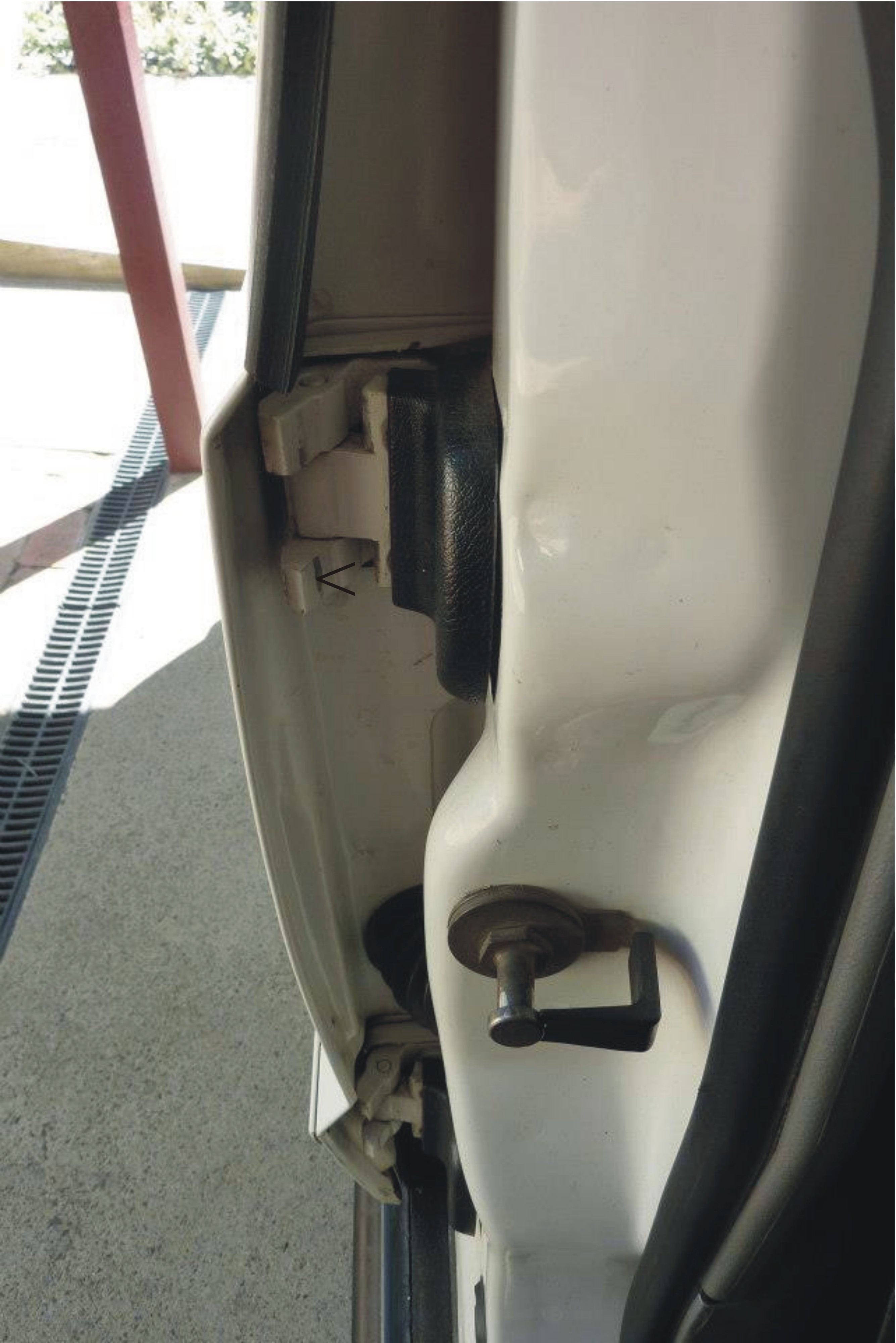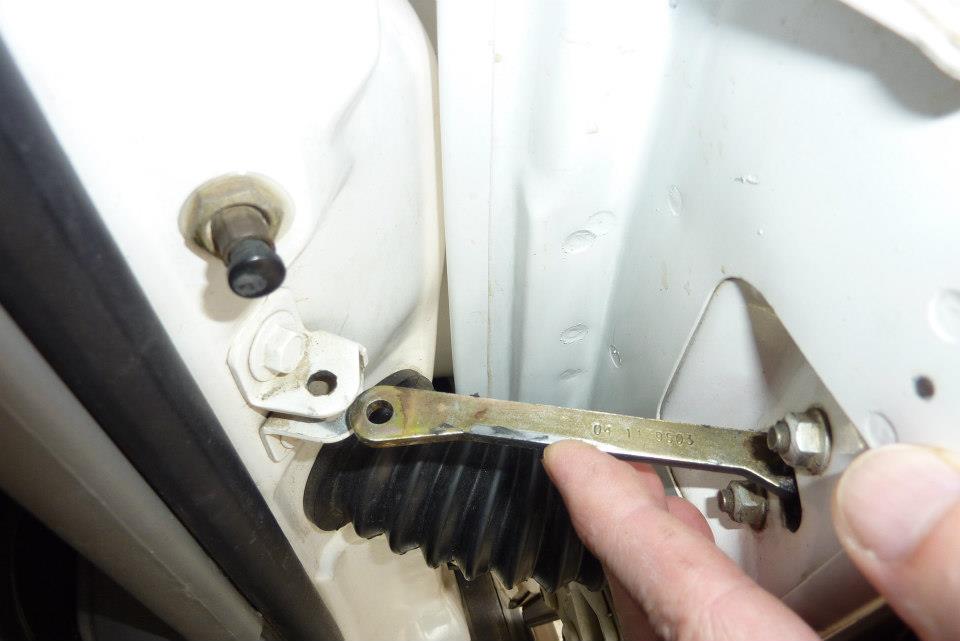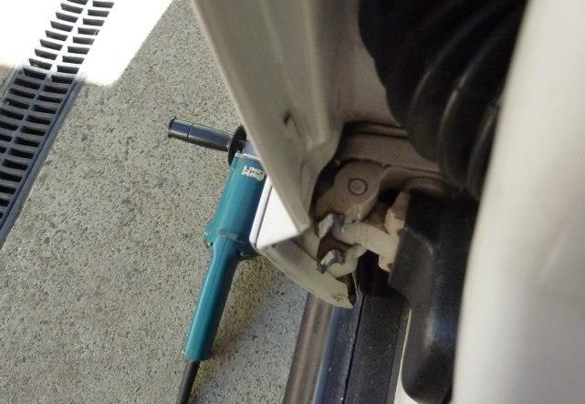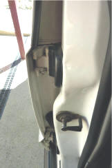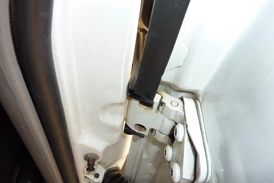 Can see now how the fingers wrap around the other part of the hinge. Next job was to make the check strap longer otherwise the door will not stay open when parked on a bit of a slope. With the strap fully pulled out I only had to add 1/2". It depends on how much you have ground away the fingers. Make sure also that a longer check strap does not interfere if you have manual windows.