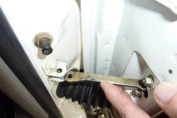 It is not only the check strap that stops the door opening further. If you expand the pictures above you will see an arrow pointing to the 'fingers' in the hinge that prevent it from opening further as well. So I first pulled the check strap pin using side cutters.