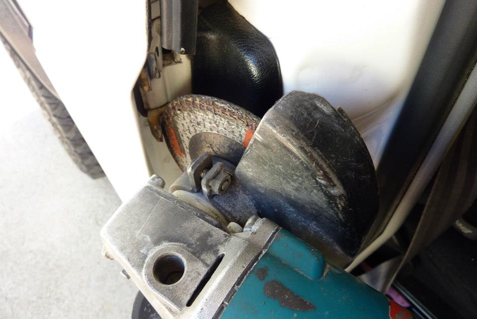 Then used a 5" angle grinder to reduce the thickness of the fingers. Can see how they have been ground down in the second photo. You must do this to both the upper and lower hinges and make them all even so they touch at the same time. Just do a bit on each and keep checking to see how far the door opens making sure it doesn't hit the back edge of the front door when it is closed.