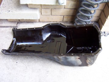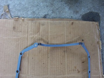 Now use only the one piece gasket for the pan, #53007568, which is all that is available in Australia but not in the USA. Place some sealant as shown between the two bolt holes close to the corner and as the other end where the curve part starts. Make sure gasket surface on the block are oil free before placing the gasket onto the sump and lifting it into place. Replace all the bolts but do not over tighten them. Start in a criss cross pattern from the centre out and do this several times until firm only.