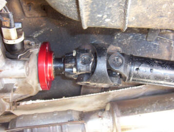 Now for the 242 transfercase ( where you can select 4wd for road use ), there are few options about. Most popular is the Rubicon Express 'Hack & Tap", the RE1801 for pre 96 that includes the seal housing or RE1807 for the flange only. So called as you 'hack' off some of the output shaft and then 'tap' the end of it to get a thread in the end of it. The thing I don't like about these is that they run a flange rather than a yoke. They also have trouble with leaks as they have little support in their short length which gives them some play which leads to the fluid leaking out on pre 96. What I wanted to find is if there was a yoke that would fit the output splines. My searching found that the Slip Yoke has to have a 1.172 x 27-spline and use the 1310 series U-Joint. It must also have bolt through holes the same dimensions a the front driveshaft at the transfercase end. I bought mine from Tom Woods using part #2-3-27ZCV-131. He was not keen on selling it to me as my idea was not proven yet so I have waited a year to write this story to make sure their were no problems first.