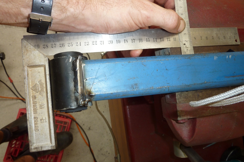 Best way to make sure the bush is square is to place a straight edge on both the tube and the bush to compare. You can see that the bush just needs to go a touch higher on the right. One side I welded to the original weld that held the bush sleeve together. Left the tubing long until fully welded so I could then accurately cut it to length in case there was any difference in the rounding out of the end of the tube.