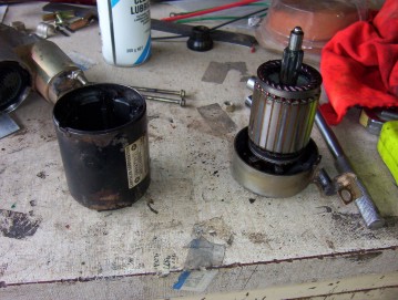 You can see in the first shot how the muddy water has got in and rusted the parts. By spraying it with the cleaner and working a tooth brush over it and even a scotch bright pad, it cleaned up nicely. Inspect the brushes as well and they can wear down quicker once mud has contaminated the starter and very easy to swap over if worn down.