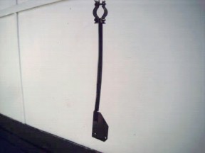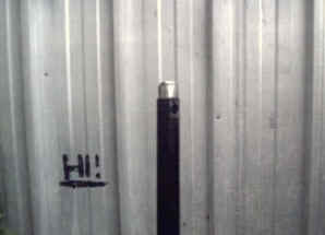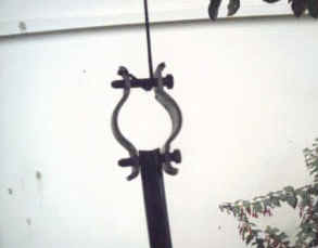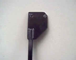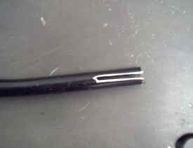 I used chrome molly mountain bike handle bars that were perfect for the job but otherwise use some 25 x 3 mm steel pipe 557 mm long. The reason for using this also is that it allows a controlled amount of flex. You want just stop it flexing beyond that which the mount can cope with to stop fatigue cracks. If you make it too ridged it will cause more stress on the mount and can lead to tearing. The slot was cut 52 mm long to slide over the bracket which stiffens the joint and increasing the welding area. The other end was ground with a curve to match the steering box and a wheel nut rounded and hammered in ( shown prior to hammering in ) to stop crushing the end. A 3/8" hole was drilled 11 mm from the end so it would be hard against the box when fitted.