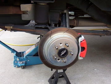 This is just a quick write up showing the fitment of Ford Territory rear disc brakes which are 13" or 328 mm in diameter and ventilated. These were just swapped in place of the Ford Falcon BA conversion I had already done to this axle and is shown here in more detail. The swap took less than an hour and was only 2 bolts a side and the brake line. Bleed the brakes and done.