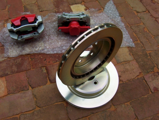 They fill my new Falcon XR8 wheels quite nicely. These will team up nicely with the 4 spot Brembo conversion I will design soon on the front. I will have the calipers landing in the next few weeks in Australia. They are new and fitted on the SRT models of the 300C and Grand Cherokee etc. The other simpler way would to bolt on the front Ford Territory rotors and calipers which should fit right on like these if you have the Falcon front conversion already done.