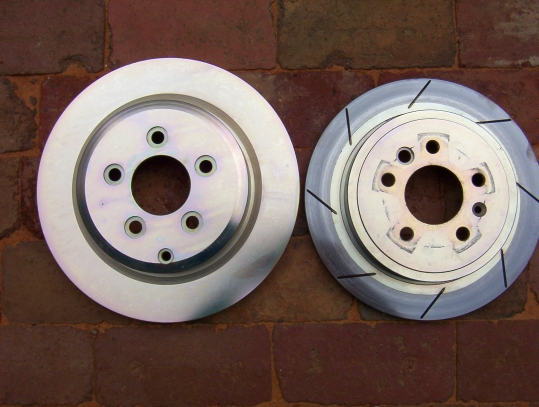 You can see the physical differences here quite clearly. The pad area is also a lot bigger and uses all of the available surface unlike the old setup which just used the outer part on the disc.