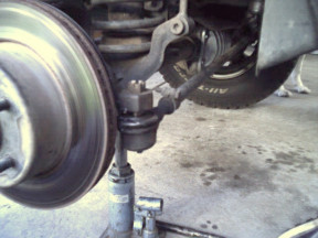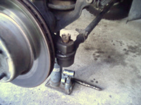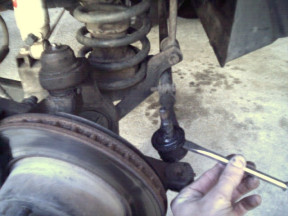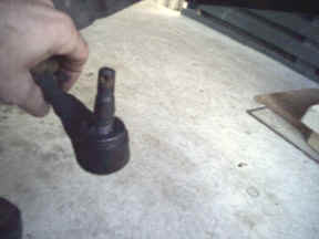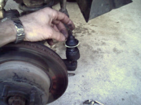 As I want to keep the tie rod I cant use a pickle fork or puller as it will damage and weaken the tie rod. I use a large hammer to give it a shape hard blow to the area shown which is the casting where the tie rod passes through. The tie rod dropped out after the second hit and this is after 7 years of not being touched. If yours has been longer or has been in contact with salt then I would recommend soaking it with a penetration oil a few days before. If it is really stubborn then some downward pressure while hitting will help.