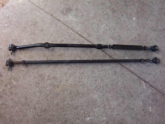 The weakest part of the steering, and the most vulnerable to impact, is the tie rod which runs from the drag link across to the other wheel connecting the left and right sides. It is just a hollow thin tube with a 16 mm or 5/8" threaded tie rod end. So I came up with a way to use a stock drag link in its place which is made from solid cast steel and runs a 22 mm thread tie rod end ( or around 7/8" ). It also gives much needs clearance around the swaybar bracket if you are running a OTK setup like shown here.