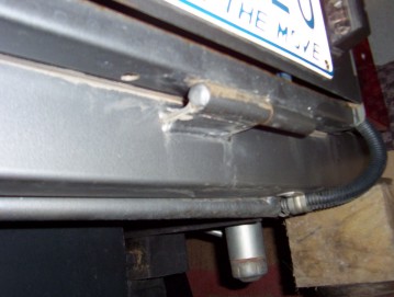 The water tank holds 60 litres had just has a 2 mm folded steel cradle bent in a U shape around it to support and protect it. It is secured through the upper flanges by 4 1/2" studs welded to the sides of the floor supports. The front face had some aluminium attached to it against all the stones thrown at it from the car. The rest is coats like the whole underside of the trailer which a product sold here in Australia called Grip 51 which is made from a rubber and bitumen mixture. I have run the drain hose to the rear like shown and used clear hose that also tee's into the vents hose at the top of the tank so I can see how much is in the tank.