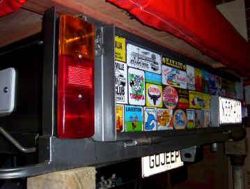 The tailgate is folded from 2 mm steel with an the top and bottom folds being 32 mm x 22 mm. It is retained by a catch that is also used on Land Rover tailgates and has never come loose. The chains can be un-hooked at the top end in case you should want to flip it right down. The vertical supports where the catch passes through as well is 50x50x3 mm angle line. You can also see how I have used self stick vinyl floor tiles so it can be used as a picnic table.