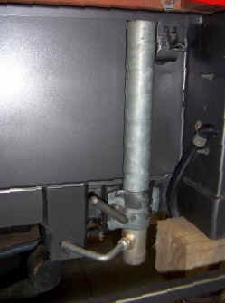 It is important if you are sealing it like mine that the hinges are spaced away from the body a couple of mm less than the thickness of the seal. If you make it sit hard against the body and then add the seal it will not close. The supports for the trailer used when it is not attached to the car are just pipe held by jockey wheel clamps which can be lowered. Then an inner pipe is also lowered to reach the ground that you can see held in by the outer pipe which has a nut welded to the outside and a bar with a threaded bolt welded to the end of it screwed in.