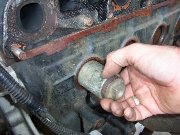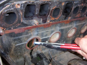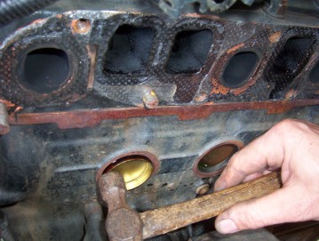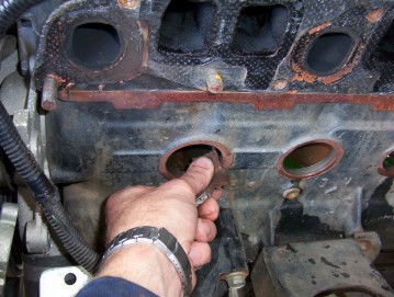 Just reach in with some multi-grips and pull it through. Run some sand paper around all the holes to make then nice and clean and free from any rust. There are 5 down the side of the block and another 1 at the back of the block and 1 at the back of the head. This does not include the cam plug which rarely needs changing due to holding back oil and not water.