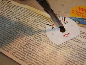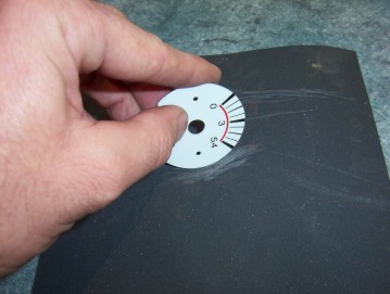 Place the background so that is sits over the needle stop and that the holes line up with it nice and square. Then replace the gauge screws after lining the face up with their mounting holes ( some large gauges may require you to pierce the screw hole first ). Make sure you clean the needle rests after the backgrounds are stuck on as it is easy to stick the needle to it.