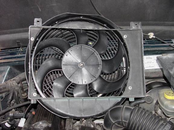 It is a tight squeeze but it will fit if you put it in from the airbox side and work it into place; remember to use zip ties and tie the wire up to the top where you can work with it!! Once you get the fan assembly into place it should look similar to this: As you can see there is not much room to work! Put your AUX fan in and wire it up your favorite way. There are so many ways to wire it I have left that for the real NAXJA gurus!
