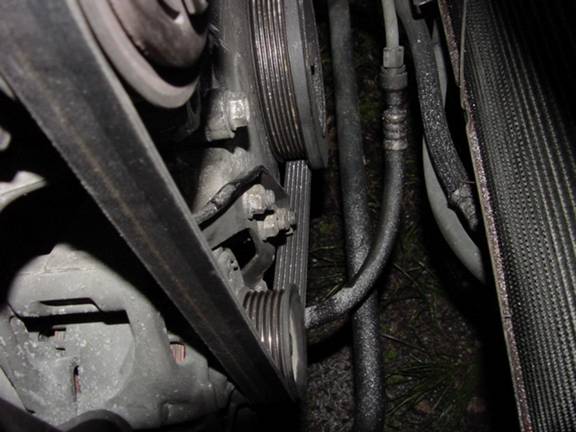 Your next step is going to be to notch the Alternator bracket to run the new belt since your fan idler won’t be there any longer. I found a Kelly Springfield belt P# 827k6 fit nicely but as long as it is between 2050 and 2100mm you should be fine.