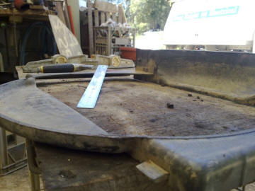 First he shaved off the lip around the sides and bottom to the level of the main base. Then cut some of the top shroud out to allow the original lip to slid into it