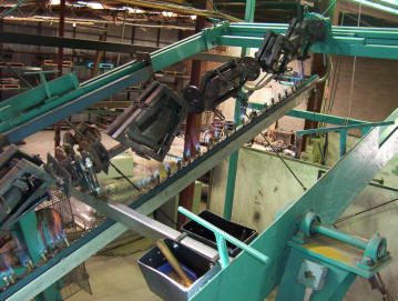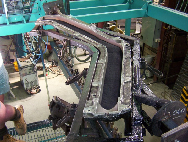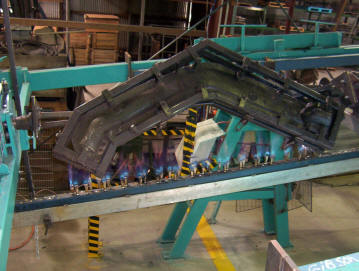 The mould is then clamped together and is heated in this rotisserie. It is all computerized just how long and fast it must rotate.