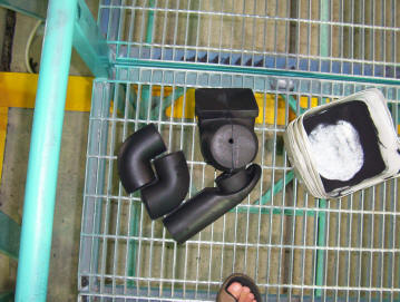 Above you can see snorkel heads and elbows etc that have freshly come out of the moulds. The photo shows a crate full of snorkel heads! Hope you found it as interesting as I did being there.